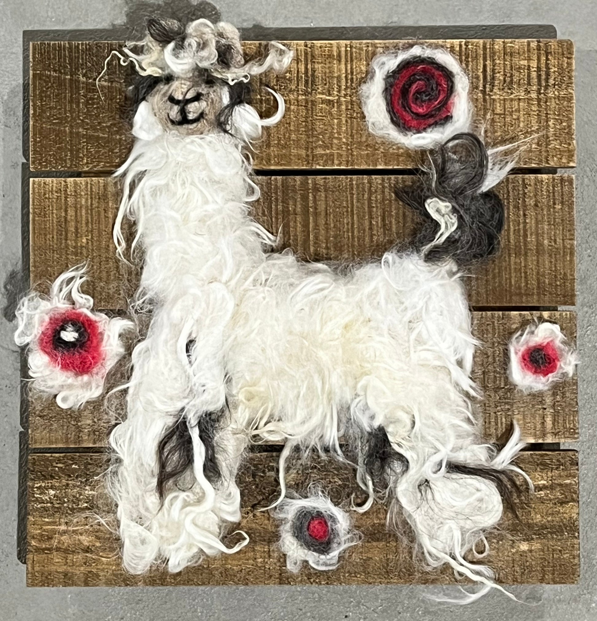 Felted Suri Alpaca Portraits on 8x8 Wood Slat | Suri Alpaca Fiber