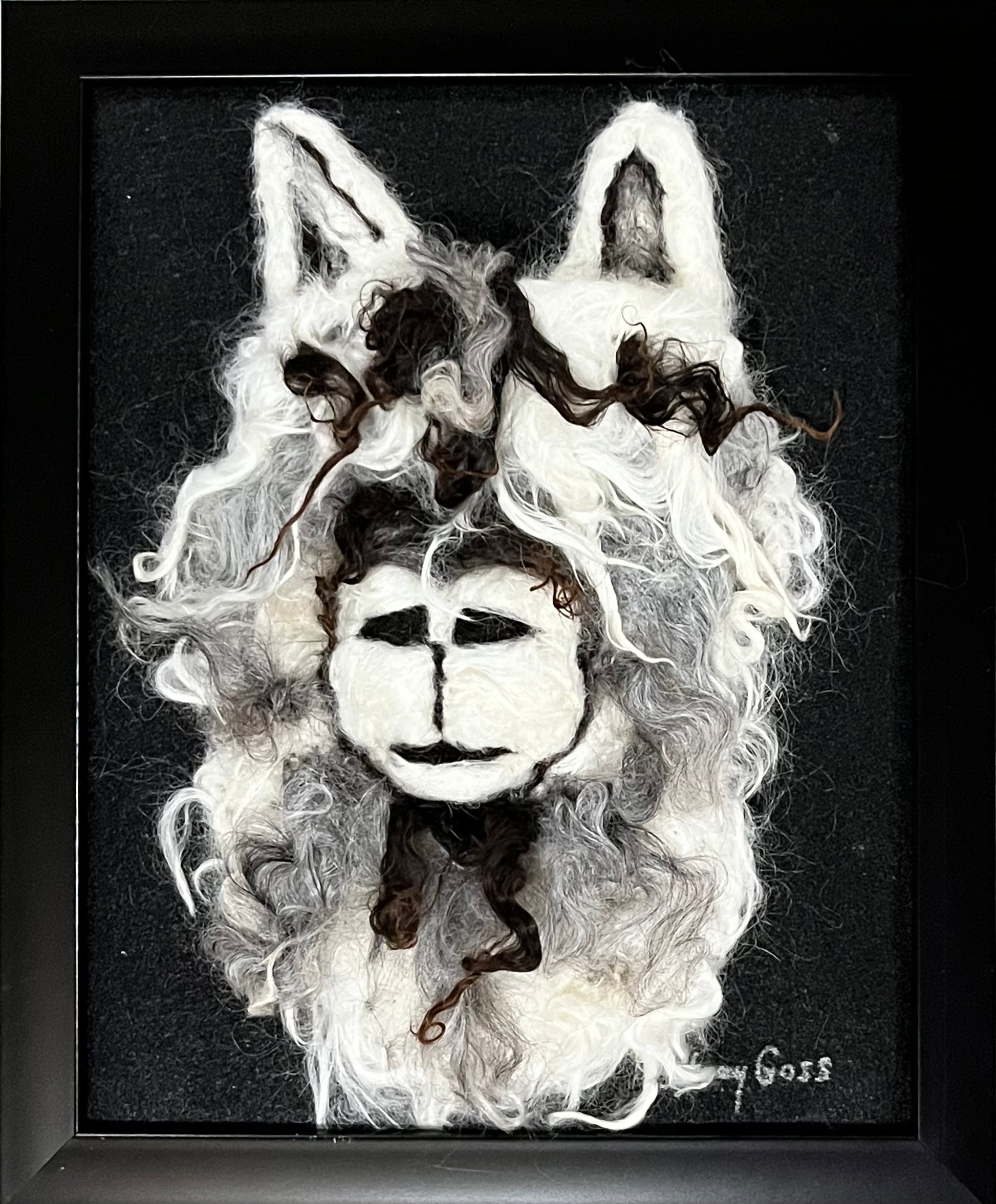 FP149 Felted Suri Alpaca Portrait Grey | Suri Alpaca Fiber Art